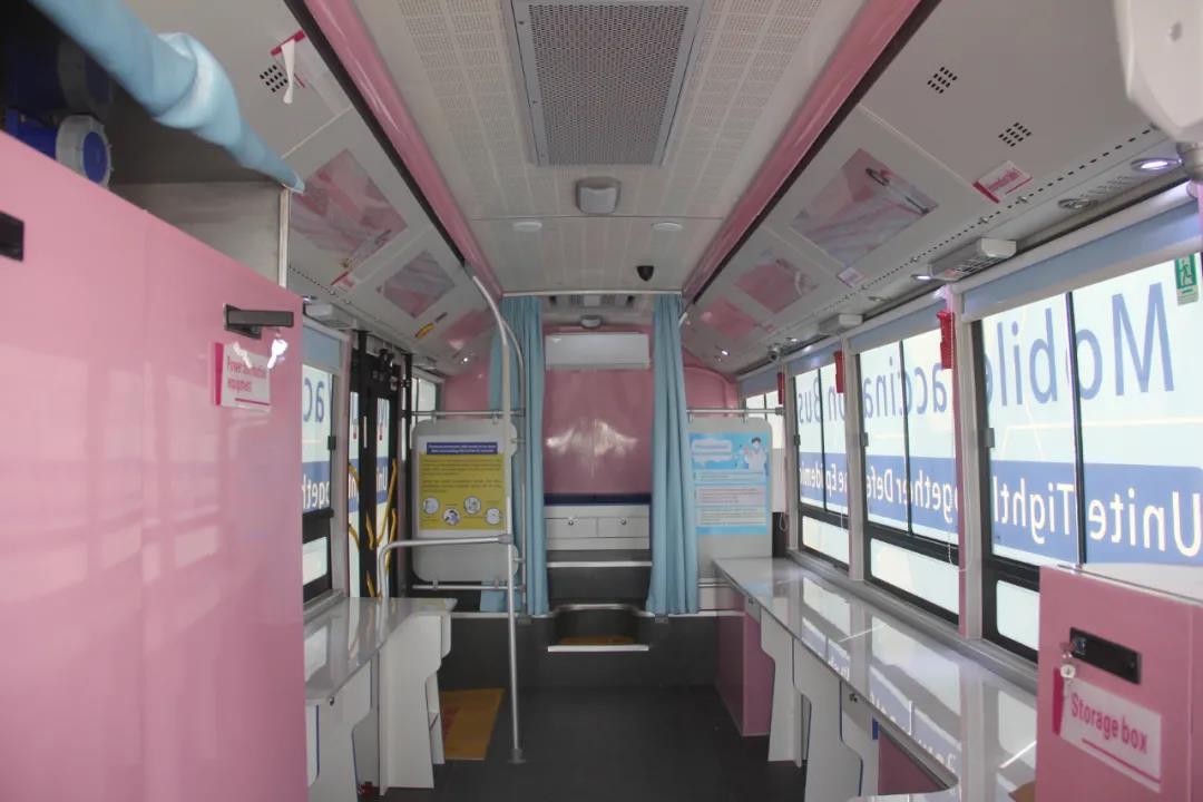 Designed and developed by Hengyang Intelligent EV Bus in conjunction with Nanhua University, this pure electric vaccination vehicle is a mobile pure electric low-entry intelligent vaccination vehicle. Based on the 10.5-meter low-entry pure electric city bus, the vehicle is designed according to the relevant technical specifications of the new crown vaccination, which is convenient for rural vaccination.
